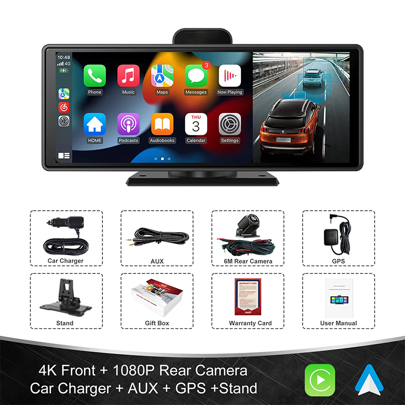 Îmbunătățește-ți mașina cu un ecran inteligent de 10,3 inchi, compatibil cu CarPlay wireless și Android Auto, care oferă un sistem de infotainment de înaltă calitate și un înregistrator auto încorporat pentru a surprinde fiecare moment de pe șosea.